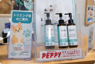 皮脂・細菌・炎症などの状態に合わせて、獣医師が薬用シャンプーを選定します。皮膚疾患のある子も安心してご相談ください。